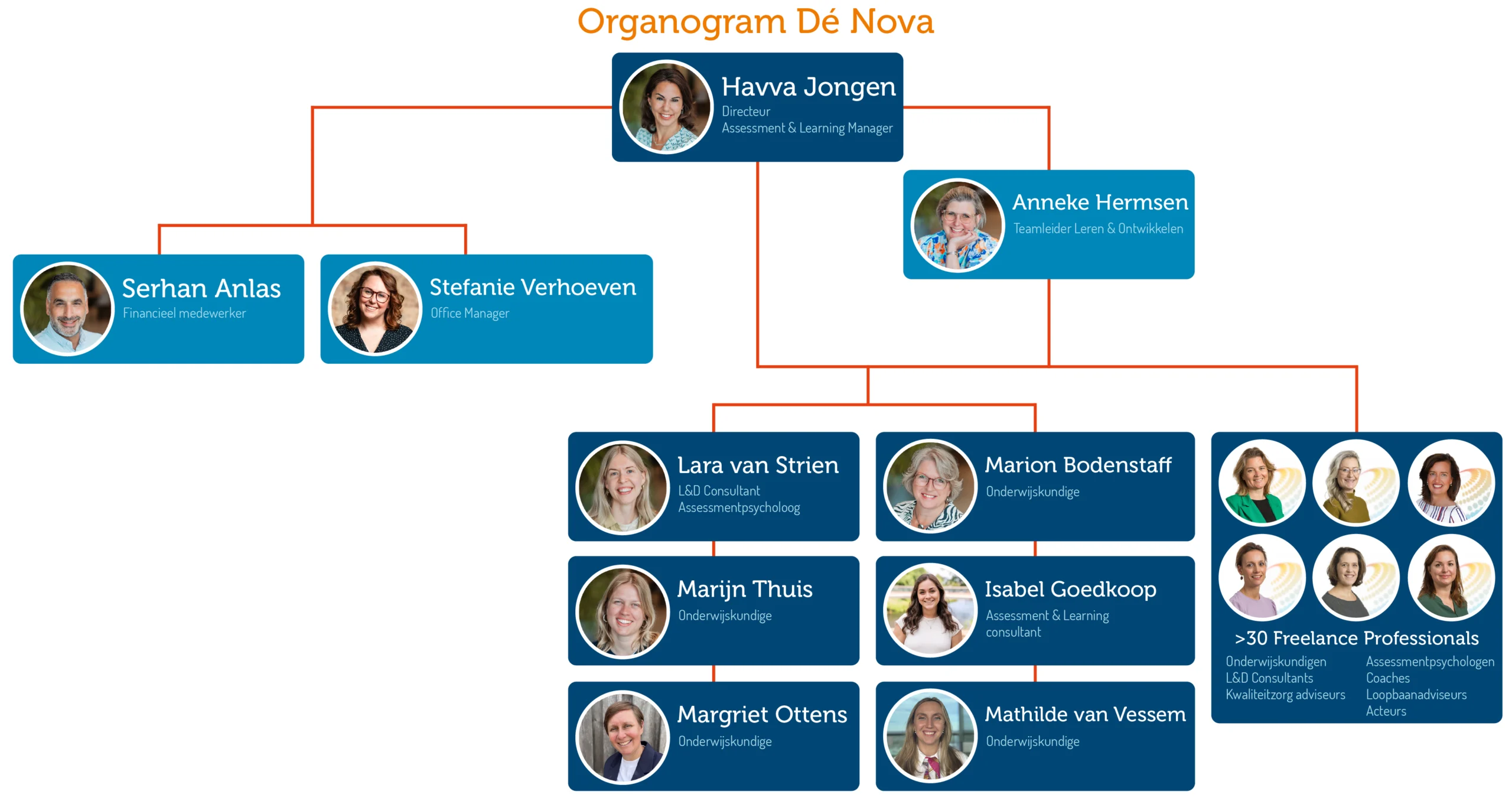 Bij Dé Nova werken wij met een zeer enthousiast en deskundig team van Assessment & Learning Consultants. Wij hebben allen een wetenschappelijke achtergrond in de arbeids- en organisatiepsychologie en / of onderwijswetenschappen, al dan niet gecombineerd met een lerarenopleiding of trainersbevoegdheid.